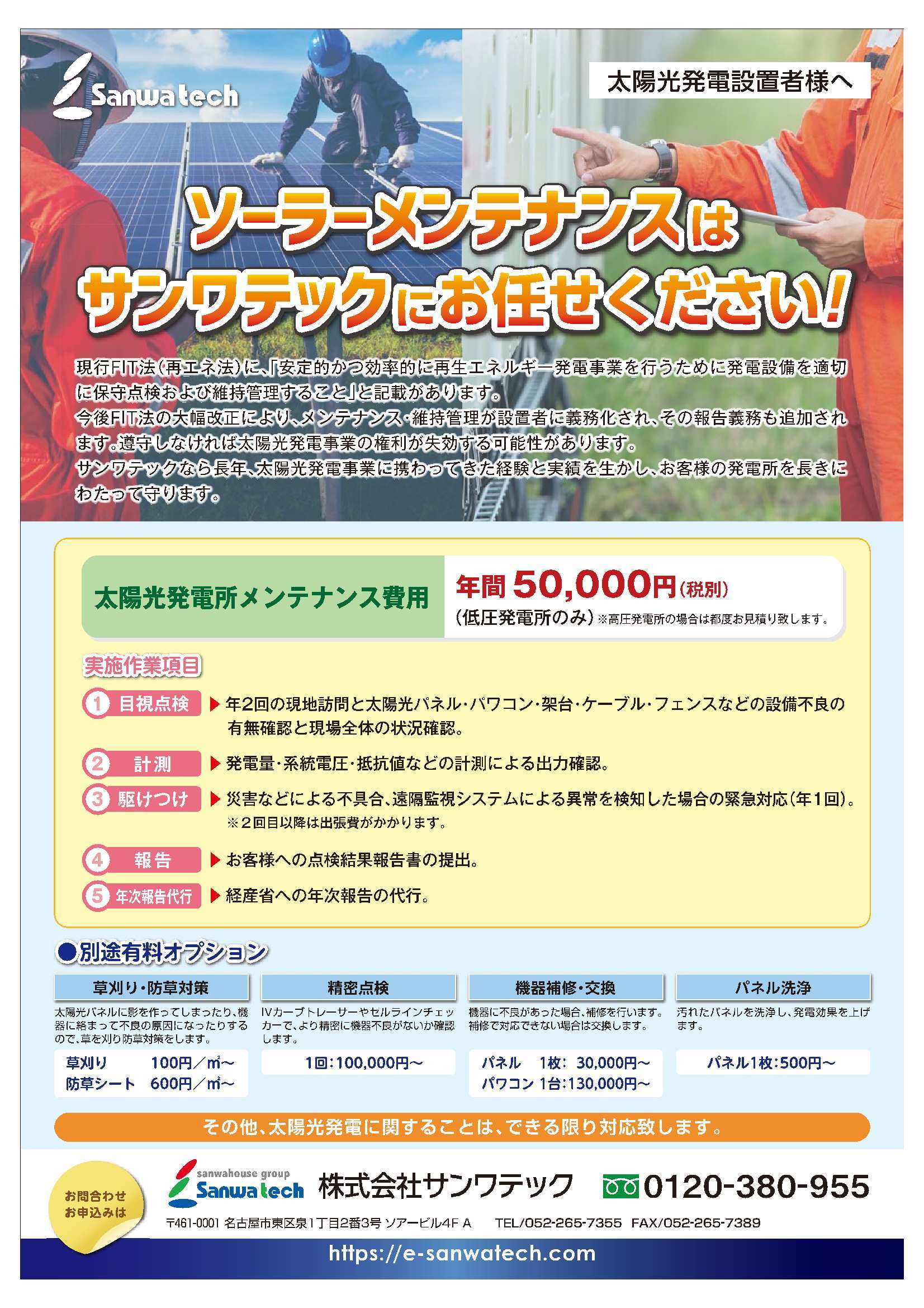 弊社にて太陽光発電のメンテナンスを取り扱っています。